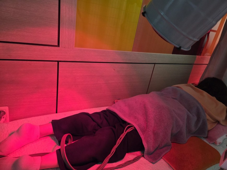 -치료내용 : 표층열(핫팩,적외선), 심층열(초음파), 간섭파전기치료, 파라핀, 운동치료(ex: 대퇴사두근강화운동, 브릿지 신체뒷면강화운동 등)